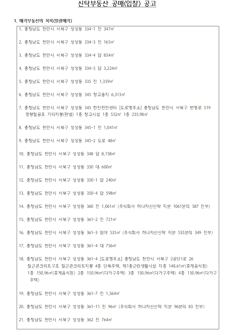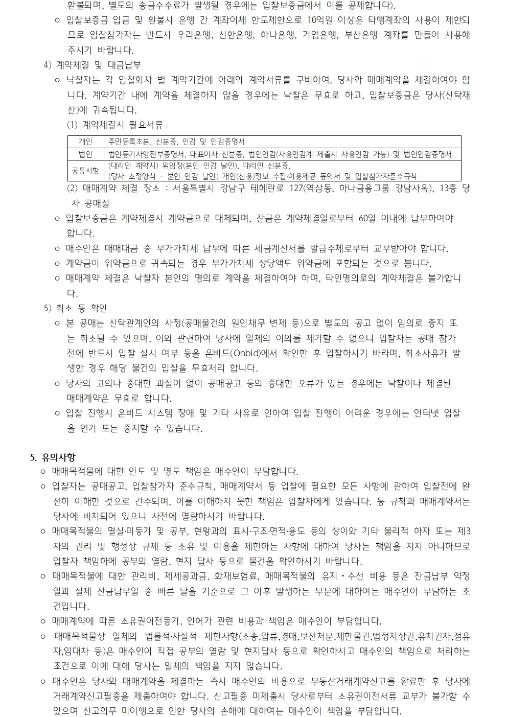 하나자산신탁의 공매정보를 알려드립니다.