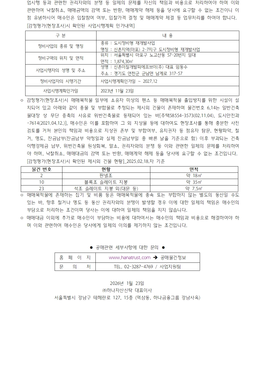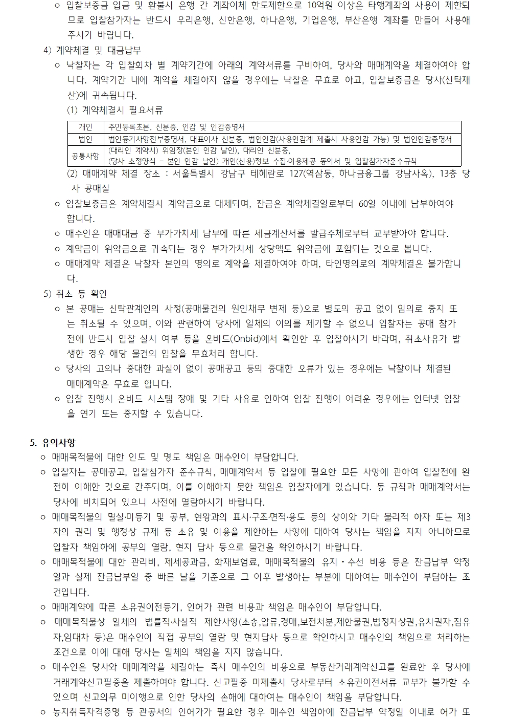 하나자산신탁의 공매정보를 알려드립니다.
