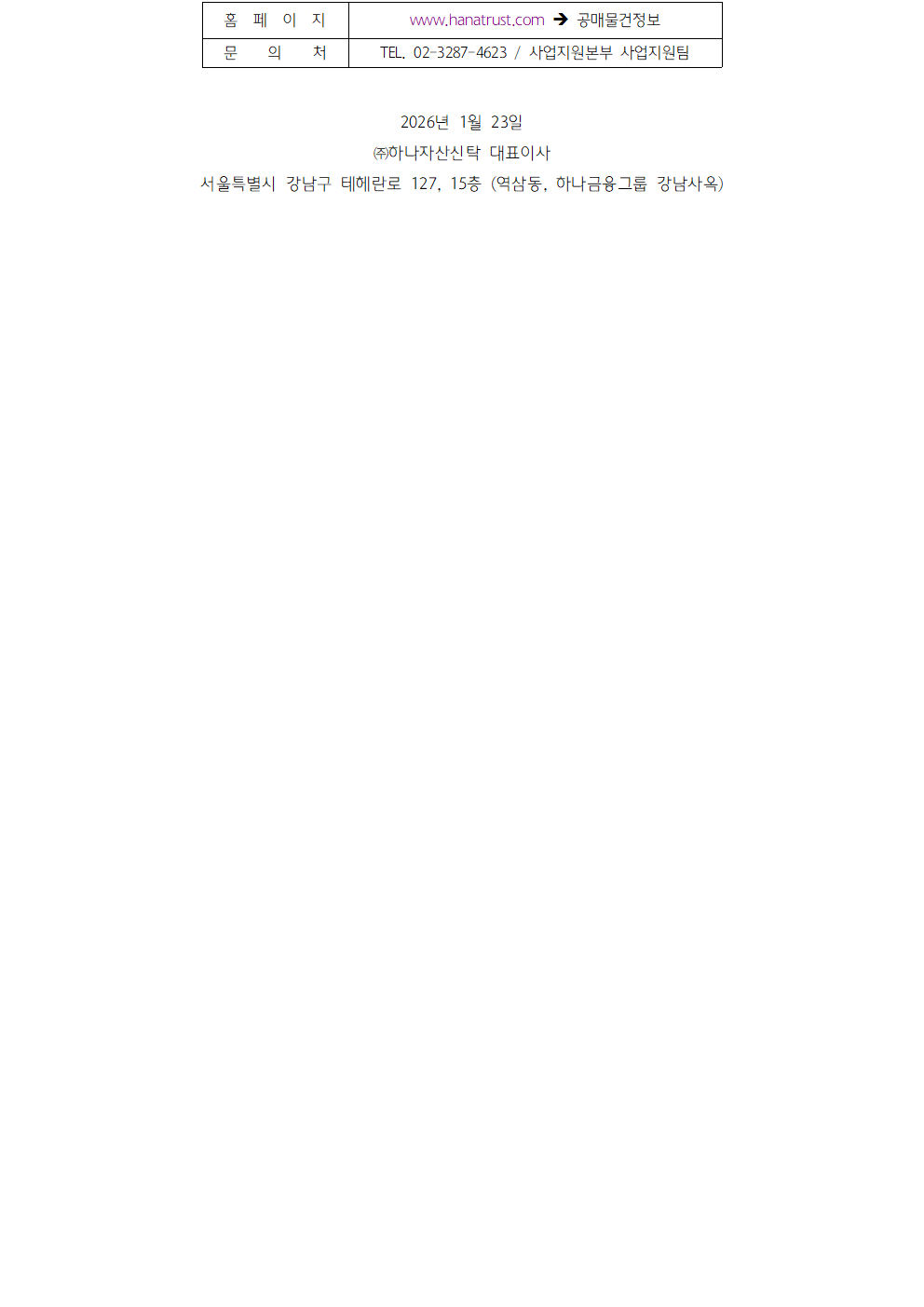 하나자산신탁의 공매정보를 알려드립니다.