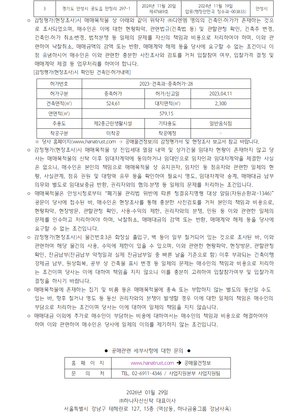 하나자산신탁의 공매정보를 알려드립니다.