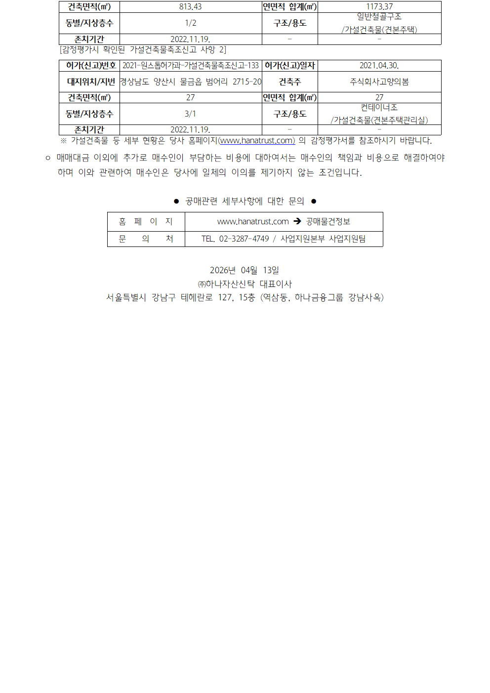 하나자산신탁의 물건정보를 알려드립니다.