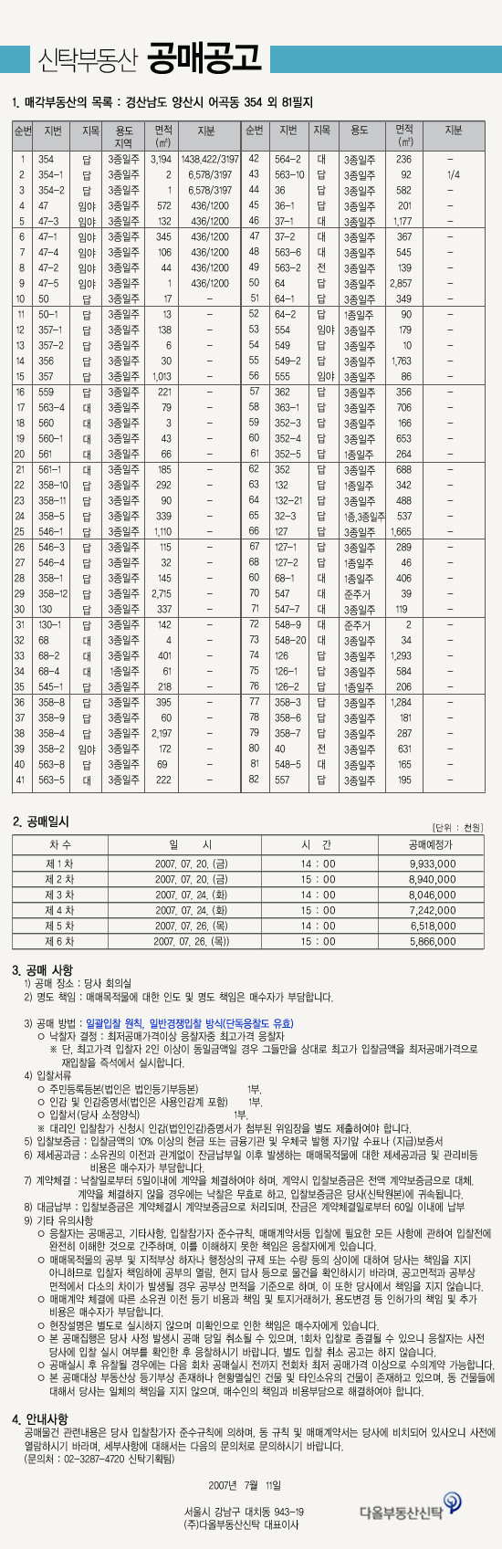 하나자산신탁의 공매정보를 알려드립니다.