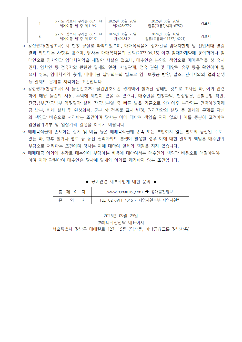 하나자산신탁의 공매정보를 알려드립니다.