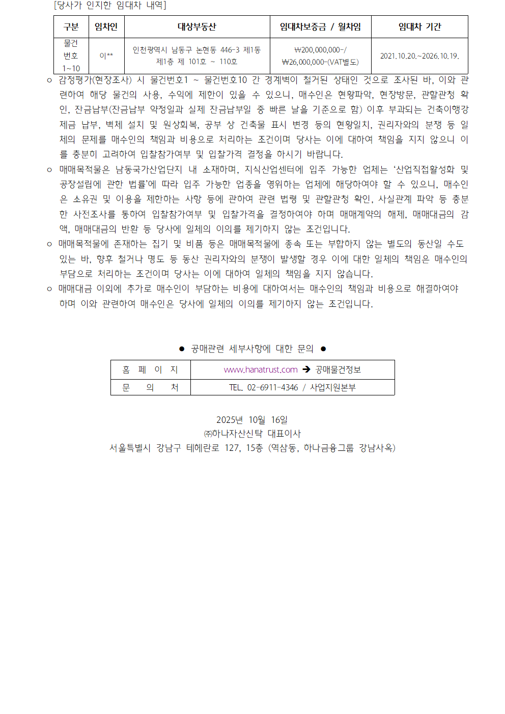 Disclosure Information 하나자산신탁의 경영공시를 안내해드립니다.