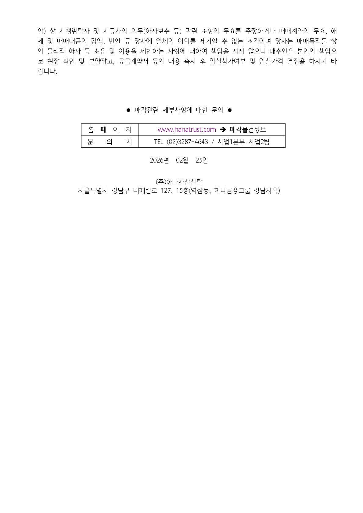 하나자산신탁의 공매정보를 알려드립니다.